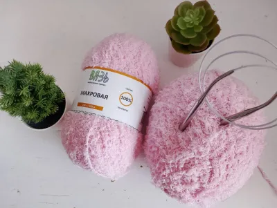 Пряжа — «Вязь», махровая, невероятно нежная и тонкая. Работать с ней — одно удовольствие, она буквально скользит в руках и сама подсказывает, каким будет изделие. И результат получился почти невесомым: на размер 116–122 ушло меньше одного мотка, а вес готового джемпера — всего 80 граммов. Настоящее чудо!