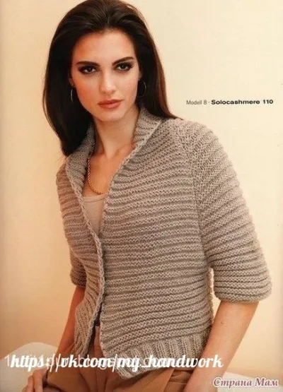 Вернуться к петлям на дополнительной спице (полочка). Продолжаем вязать по рисунку 22(24) петли. Достигнув длины 14(15,5) см закрываем петли. Вторую полочку закончить таким же образом.