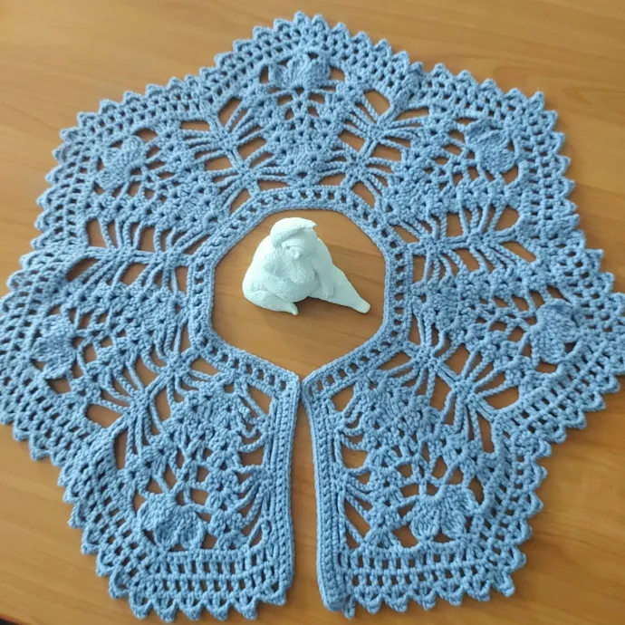 Пряжа мягкая, после вто легла как надо. Схему взяла не как у всех, применила интересную салфетку. Схемой конечно делюсь ? Начинала вязать с 10 ряда.