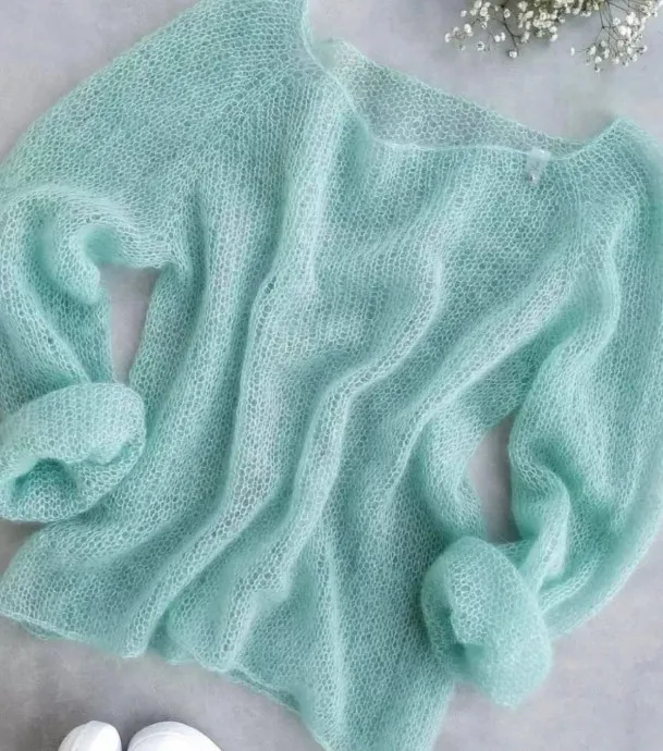 Вязание из мохера требует чуть больше внимания, но результат всегда стоит того. Полотно получается благородным, живым, с лёгким пушком, который делает изделие особенно уютным и «дорогим» на вид.