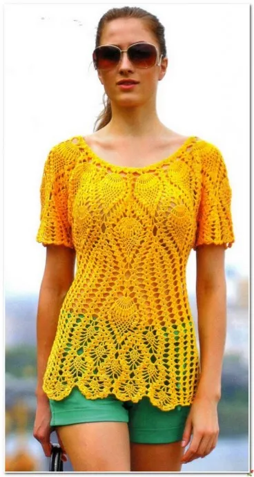 Так в для чего существует поисковик, наберите «Туника крючком узором ананас схемы». Вам выдаст такое количество, и таких и еще круче. А еще есть своя фантазия берете схему и действуете.