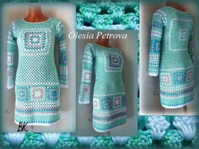 Вот только сегодня положила себе в запасы фотку с платьем такого типа. БК и обвязка… вроде и несложно, но цвета подбирать нужно внимательно, чтобы получилась красивая вещь. И тут вижу эту прелесть! А мне нравится и квадрат на полочке, и на спинке… всё красиво сложилось!