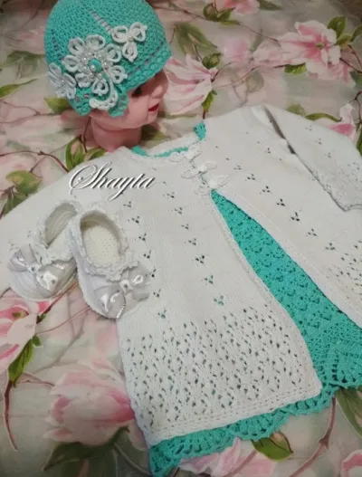 Здравствуйте, мастерицы! Авторская работа. Детский комплект ДжоДжо на возраст от 6 месяцев до 1-1.3г, состоит из платьица, шапочки и пинеток, которые связаны крючком № 1,05 и № 1,7(пряжа Денди 330м -50г, хлопок), расход 3.5 мотка. А также летнее пальто из хлопка спицами № 2, пряжа Ализе коттон беби 2,5 мотка (270м-100гр), на отделку - ирис, бусины, пуговки. Платье связано от начала кокетки вверх, потом вниз(вкруговую). Шапочка тоже вкруговую, цветочные мотивы пришиты, украшены бусинами; пинетки от подошвы вверх. Пальто связано снизу вверх одним полотном, затем разделила на полочки и спинку. Рукава связаны отдельно и пришиты. Швы плечевые. Пальто можно и в 2 года надевать, уже как кофточку с рукавами 3/4. Приятного просмотра... Всем вдохновения,удач и тепла!