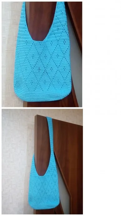 и я такую вязала ))) в темносинем варианте!!! очень долго мои девочки ее носили- до полного выгорания цвета!!! замечательно удобная эта сумка!!!