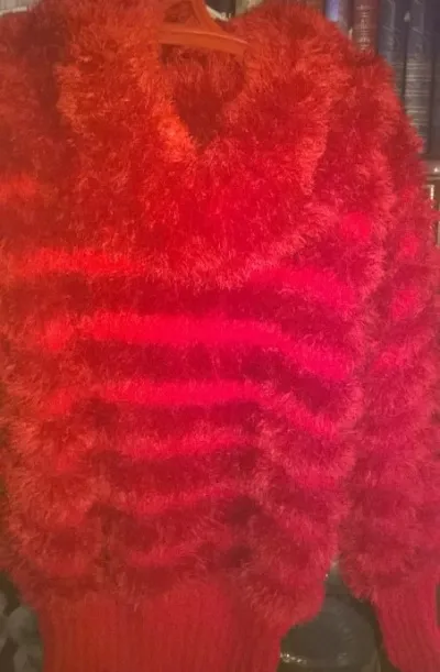 Свитер красный с большим воротником из травки