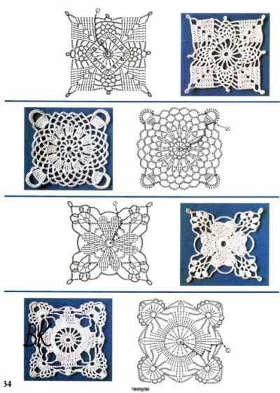 Квадратные мотивы для вязания крючком.