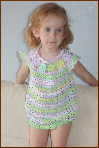 Комплект Для Миланы связан крючком из пряжи Белла от Ализе( хлопок) .Беретик стащили в садике из шкафчика почти сразу....а туничку носили с большим удовольствиемсначала,как платьице,а потом ,как тунику.