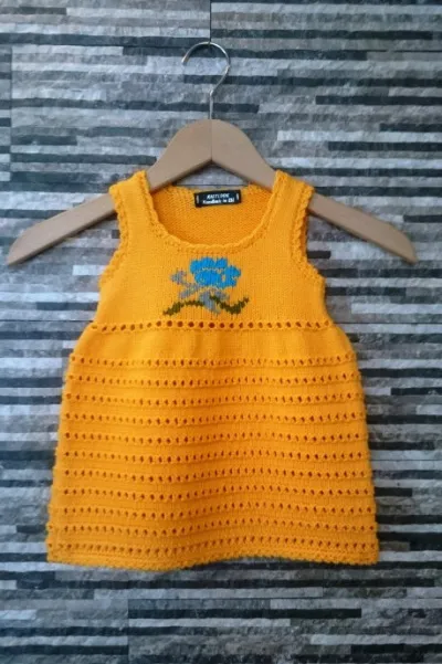 Летнее платье спицами для девочки 1-2 года с вышивкой.