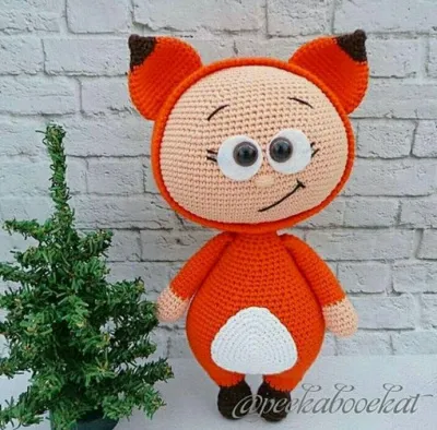 Я вяжу игрушки разных размеров- самая большая 38 см, а самые маленькие около 6 см… Внучка моей подруги очень любит мои игрушки, ей нравятся небольшие- 14-17 см высотой.Всюду с собой таскает какую-нибудь игршку…