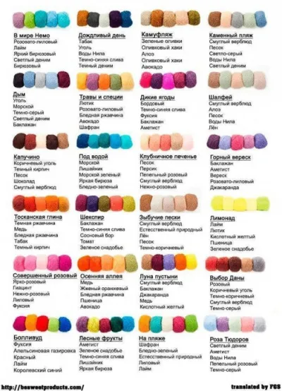 5. Фуксия (темно – розовый) – с серым, желто-коричневым, зеленым лаймом, зеленой мятой, коричневый.