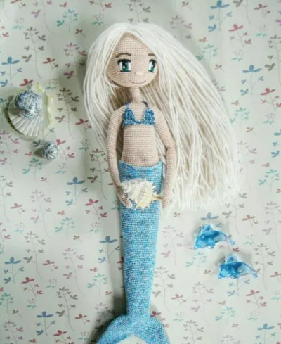 Всем добрый день! Я испытываю странные привязанности к русалочкам. Люблю и сказку эту, и мультики с детьми смотрела. Поэтому когда набредаю в Сети на такие работы, как русалочка на фото, автор работы: wasilenatoys поразила своей аккуратностью и деликатностью линий.