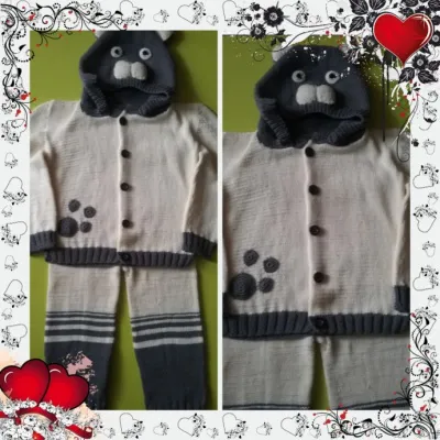 Костюмчик связан для малыша по имени Миша. Ему сейчас третий месяц, а вот бабушка с ним встретиться только в годик. Решили вязать на 1,5 - 2 годика. Очень тяжело вязать без размеров, да ещё и на детей не вязала лет 15.но что вышло, то вышло.