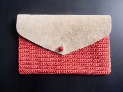 Выровняв края, соедините боковые швы клатча крючком через край с наружной стороны. Или, если вы хотите сделать соединение не таким броским, вы можете просто сшить края иголкой и ниткой.