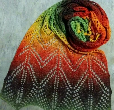 И недавно мне встретилась такая работа. Палантин радужного цвета от ya_korepova и прямо захотелось приобрести такую пряжу и связать нечто подобное. А как вы относитесь к радужным расцветкам? Нравится?