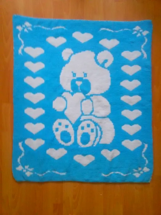 Детский пледик связан в подарок из Ализе софти, двусторонним жаккардом,размер получился примерно 120×90