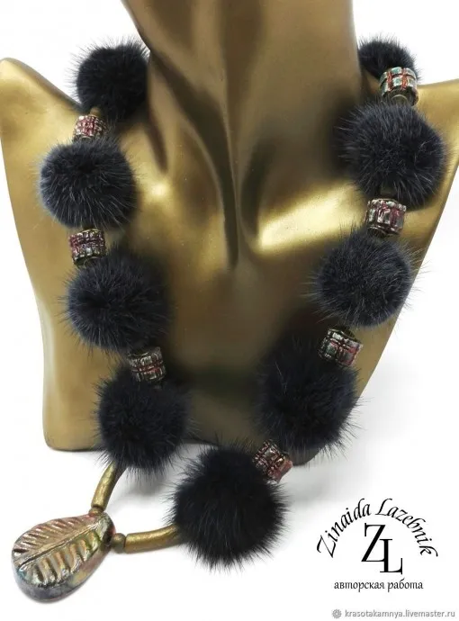 Очень красивое стильное колье! Напомнило колье из коллекции Лангани 2009 года. В использовании меха в украшениях есть особый шик.
