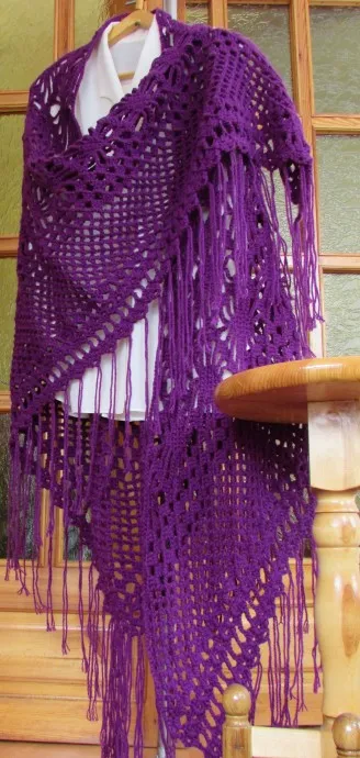 Шаль вязаная Фиолет ажур ,изделие ручной работы, вязание крючком,