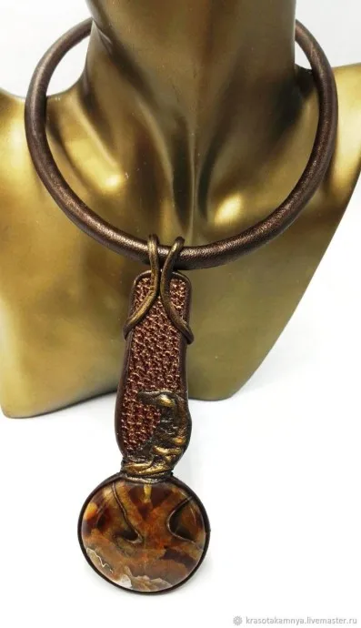 Колье из кожи и Сердолика