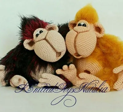 Думаю, что рыжей обезьяне приваляли шерсть, очень на то похоже, а черная похожа на травку. А у меня еще один вопрос-а есть описание? Очень обезьяны понравились.