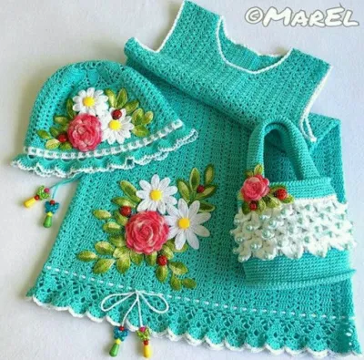 Увидела этот комплект (автор подписан на фото) и просто влюбилась! Такая красота! И нежные цвета, и изумительное исполнение, как вам?