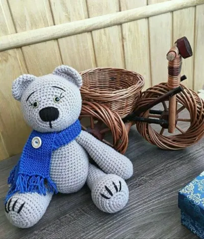 Красивенный медведь от автора @rkasivo_vyazhem_vm и сразу захотелось спросить, был ли у вас мишка в детстве? Какой он был, как его звали?