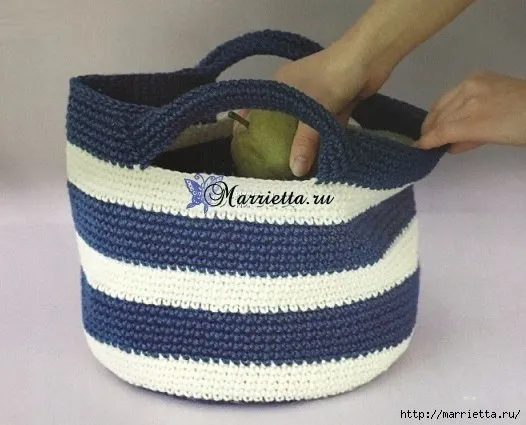 Связала такую сумочку, но решила ручки сделать длиннее, чтобы на плечо были. В результате ручки вытянулись. Вывод: лучше придерживаться схемы вязания!