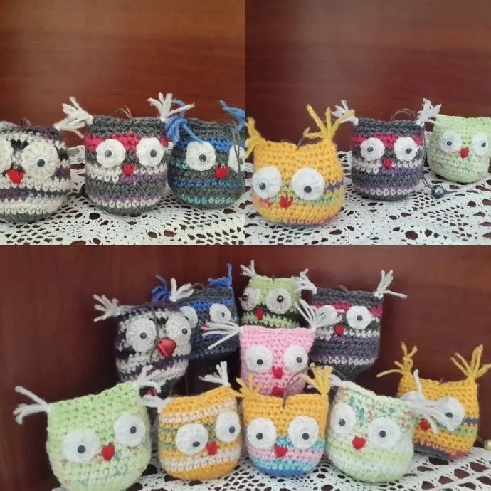 такие милые крошки. Моя племяшка маленькая в восторге от сов разных, я ей такую крошку одну связала, она радостно забрала в свои богатства
