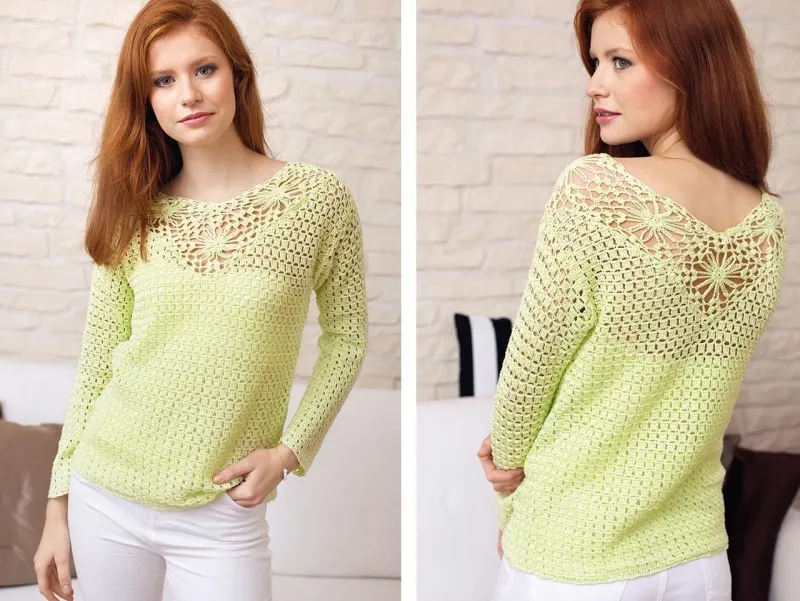 Женственный и романтичный джемпер с ажурной вставкой будет отличным дополнением к наряду для прогулки летним вечером.