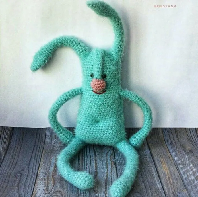 Такой интересный зайчик привлек мое внимание. Особенно понравилась его фактура. Пытаюсь понять, что за пряжа? Травка какая-то короткая или это что-то другое?