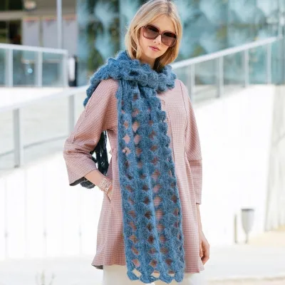 Очень простой в работе шарф смотрится эффектно за счет использования довольно толстого крючка.