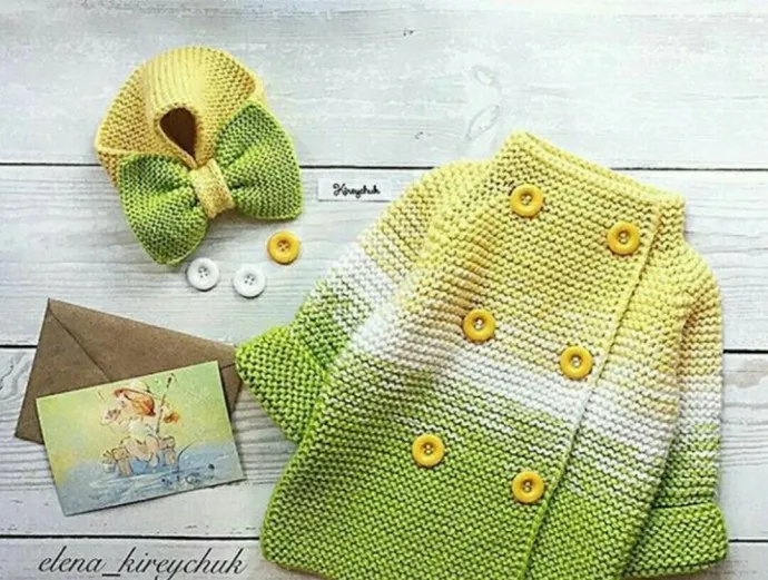 Комплект повязка на голову и пальтишко - идеальный для стильной малышки. Мне так понравилась эта пряжа и мягкие цветовые переходы!