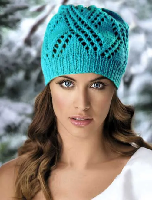 Отличная модель шапочки по схеме вязания спицами для начала осени. Яркий бирюзовый цвет не даст вам впасть в осеннюю хандру, а только будет придавать свежести. Ну а если решили связать такую шапочку на весну, то вы ни капли не ошиблись с выбором.