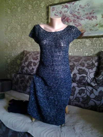 Платье отличное. Тяжело рассмотреть пряжу.