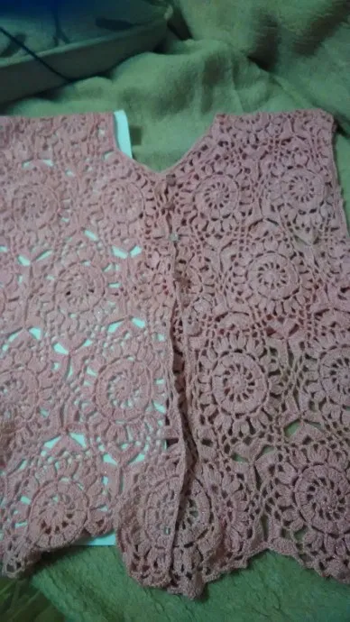 Жилет красивый. Про шаль не поняла. Жилет лежит на шали?