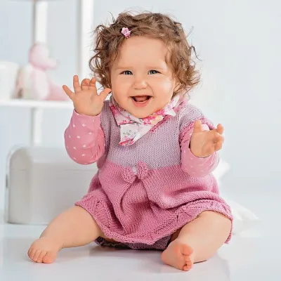 Пряжа (100% хлопка; 125 м/50 г) — по 100 (150) г розовой и бледно-сиреневой; спицы №3,5; короткие круговые спицы №2,5 и 3,5; чулочные спицы №3; крючок №3.