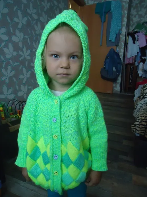 Мой любимый бесшовный способ вязания. Курточка для внучки. Проба вязания энтерлака. Вязала в 2 нитки Пехорка-Детская новинка, спицы 3,5. Всё экспериментирую