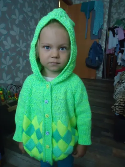 симпатично! яркая кофточка! решение с вязаной совой на капюшоне — вообще супер!