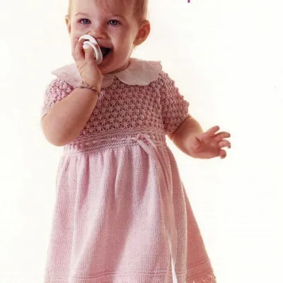 Несложные узоры и белый воротник делают розовое платье нарядным и праздничным.