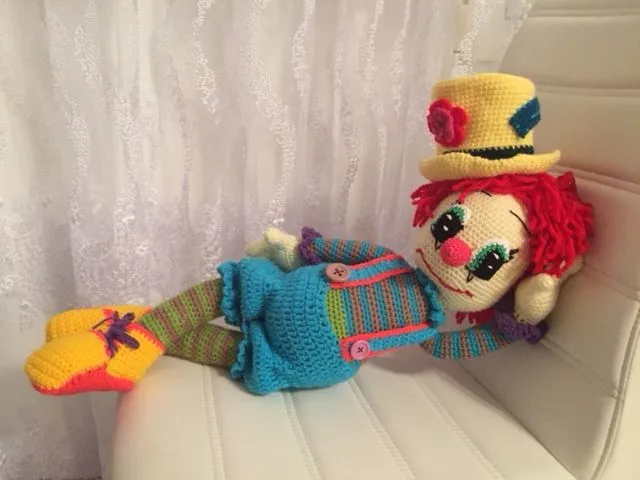 Вот связался молый клоун от Happy Kids Amigurumi Designs, переводчик неизвестен. Не очень люблю клоунов, но этот запал в душу:-)
