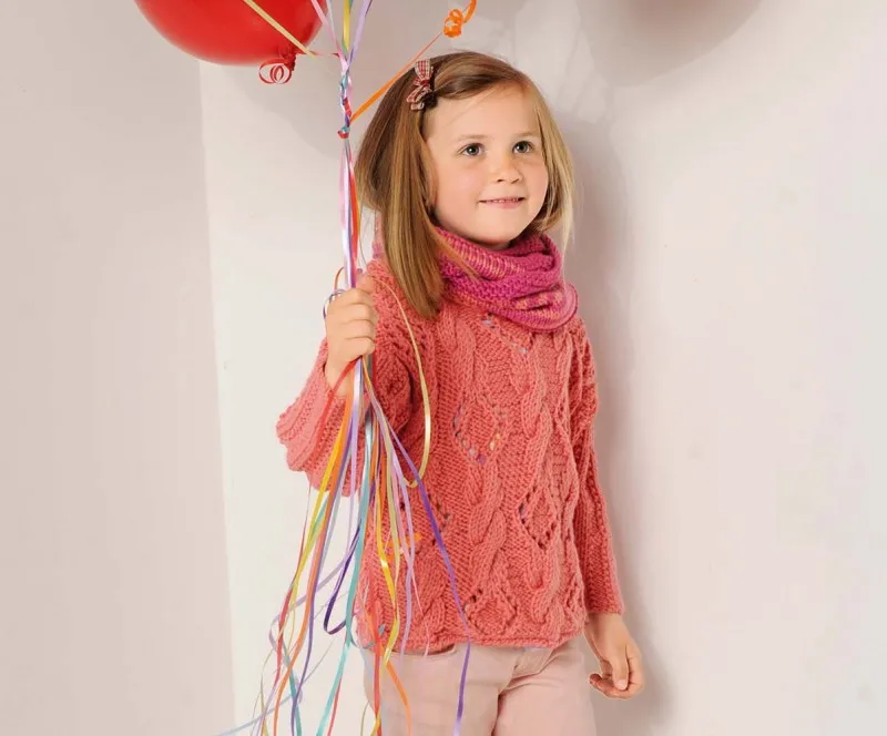 Пряжа (50% полиамида, 50% полиакрила; 75 м/50 г) – 350 (550) г лососевой и 100 (150) г ярко-розовой; спицы №4,5 и 5; короткие круговые спицы № 5; 1 вспомогательная спица и крючок №4,5.