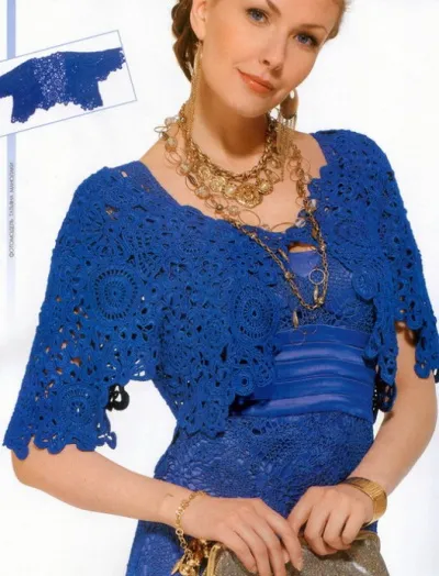 Болеро выполнено в технике ирландского кружева. но по-моему, эффект больше за счет цвета ниточки