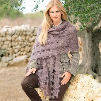 Платок, палантин или шарф? Мягкий материал и завораживающий узор позволяют использовать эту модель с красивым бордюром так, как хочется.