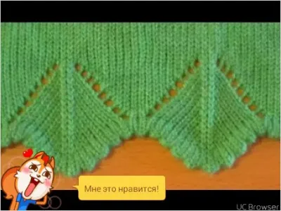 Поищите оформление края «зубчиками» или вязание зубчатого края, очень много видео на эту тему. А дальше, в конкретном случае, узор на раппорте в 20 петель: лицевая, накид, семь лицевых, две вместе лицевой с наклоном вправо, две вместе лицевой с наклоном влево, накид, лицевая. В изнаночном ряду- все изнаночные. 3 ряд: две лицевых, накид, шесть лицевых, две вместе вправо, две вместе влево, шесть лицевых, накид, две лицевых. Продолжаете по тому же принципу, удачи