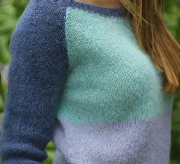 МОЖНО И ОТ ГОРЛОВИНЫ С РАЗНЫХ КЛУБКОВ А ПО ЛИНИИ РЕГЛАНА ПРОСТО ПЕРЕКРУТИТЬ КАК ОБЫЧНО ПРИ СМЕНЕ ЦВЕТА