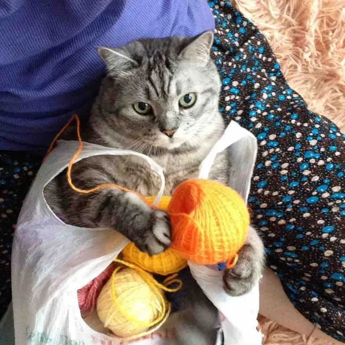 Мне повезло- кот прохладен к моему вязанию, но очень любит устраиваться рядышком и дрыхнуть