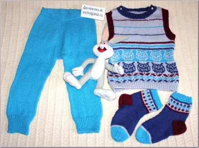 Успела связать еще один детский комлект,но в этот раз на двухлетнего мужчинки по имени Никита.( это один из девяти внуков моей подруги).Я вязала из пряжи SUPER EXCELLENCE 49% шерсть, 51% акрил, 228 м, 100 гр. от NAKO(Турция) спицами 3,5 и 4 мм.