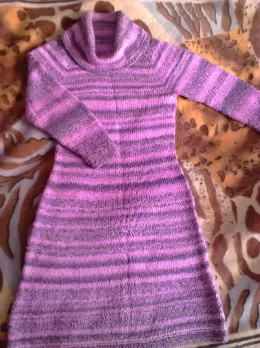Платье связано регланом сверху.Без единого шва.И рукава тоже.Связано из ниток Эверест от Ярн Арт.320г /200 м.Брала 3 мотка,оталось почти половина третьего.Спицы 4,5 мм.Само платье вязалось легко,связала буквально за 4 дня.А вот с воротником "хомут" пришлось повозиться.Зато лежит,как теперь как надо.