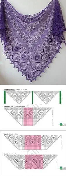 Для вязания шалей подходят пряжи с максимальным содержанием натурального волокна, шерсти или льна, рекомендуемая длина нити от 500 м на 100 гр. Пряжа с содержанием синтетики более 25% не позволят правильно и надолго зафиксировать форму шали(провести блокировку). В интернете много доступной информации с рекомендациями по вязанию шалей. У меня был опыт вязания из рассказовской пряжи и из кауни, результат понравился. Еще хвалят чистошерстянную Семеновскую Лидию, вяжут в 2-3 нити, ну и мохер на шелке.