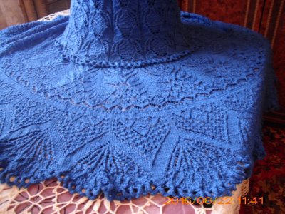Как-то на ваших страницах мне попалась накидка на основе шали КЛЕМАТИС. я загорелась и решила связать платье на основе 2-х шалей- Клематис и Виконтесса(авт. Надежда Кремнева) . Пряжа Alize Cotton Soft (100г-600м). На 58р ушло 340г. Юбка соответственно клеш, потому размер по подолу 4 м. Верх- это шаль Клематис, низ — Виконтесса. Спицы от №2 до №4. Платье вязалось по кругу, только в пройме несколько см обратными рядами, так что шовчик небольшой. Вот , что из этого получилось. Может, кому-то еще приглянется эта идея