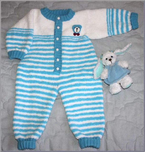 Связался вот такой комбинезончик для маленького Кирюши . Ниточки остались от пледика с мишкой - Плед"Мишка"двухсторонним жаккардом .Теперь у малыша будет комплект.